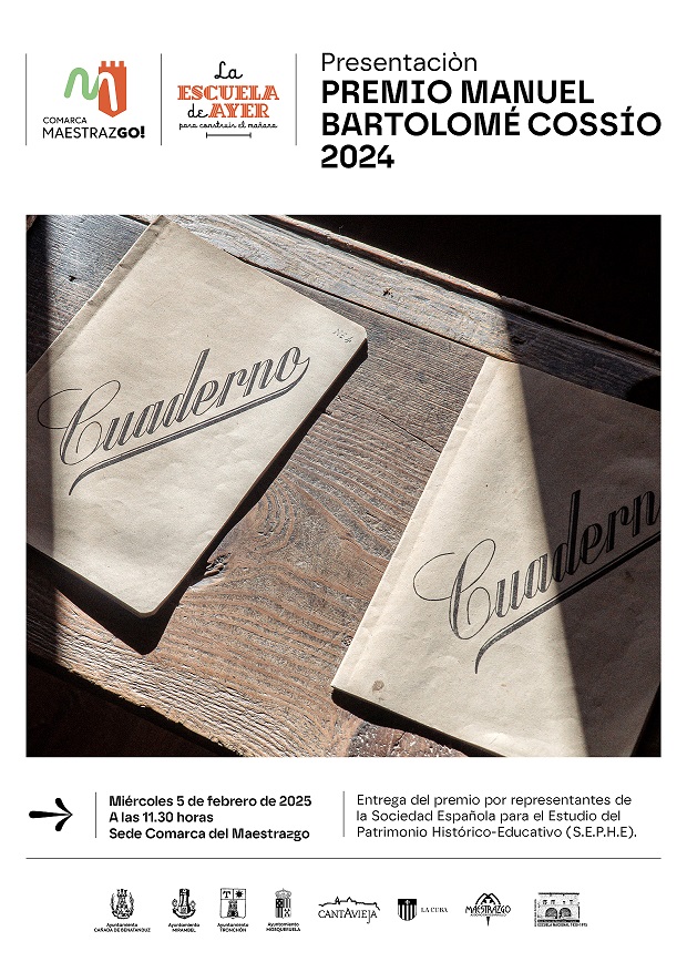 El día 5 de febrero a las 11.30h en la Sede de la Comarca del Maestrazgo en Cantavieja, se llevará a cabo un evento para celebrar la entrega del Premio Manuel Bartolomé Cossío 2024